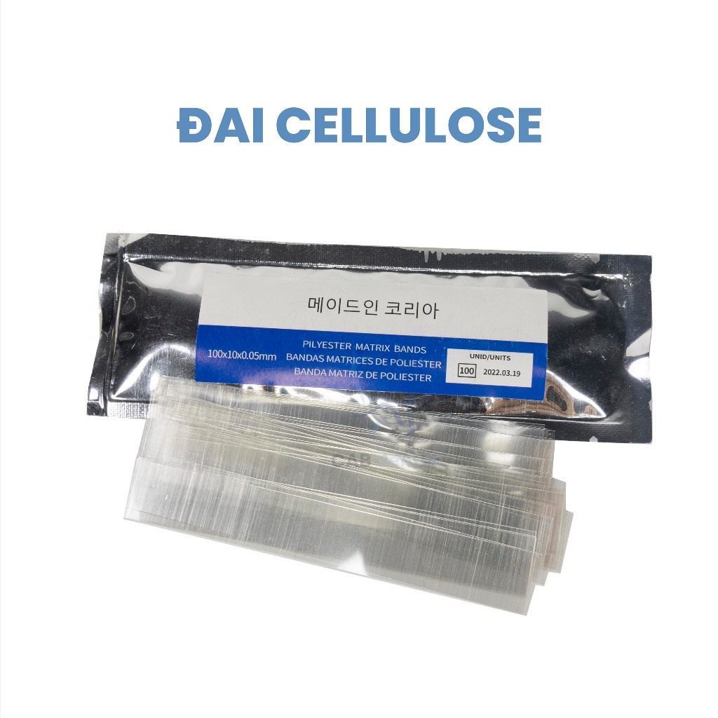 Set 10 miếng, hộp: 100 miếng Dùng để tách kẽ răng Giữ khuôn trám trong quá trình trám răng Ưu điểm: mỏng, dẻo. Hình ảnh do shop tự thực hiện, quý khách yên tâm về chất lượng sản phẩm. =========================== #Daicenlu #Daitrong #cenllulose