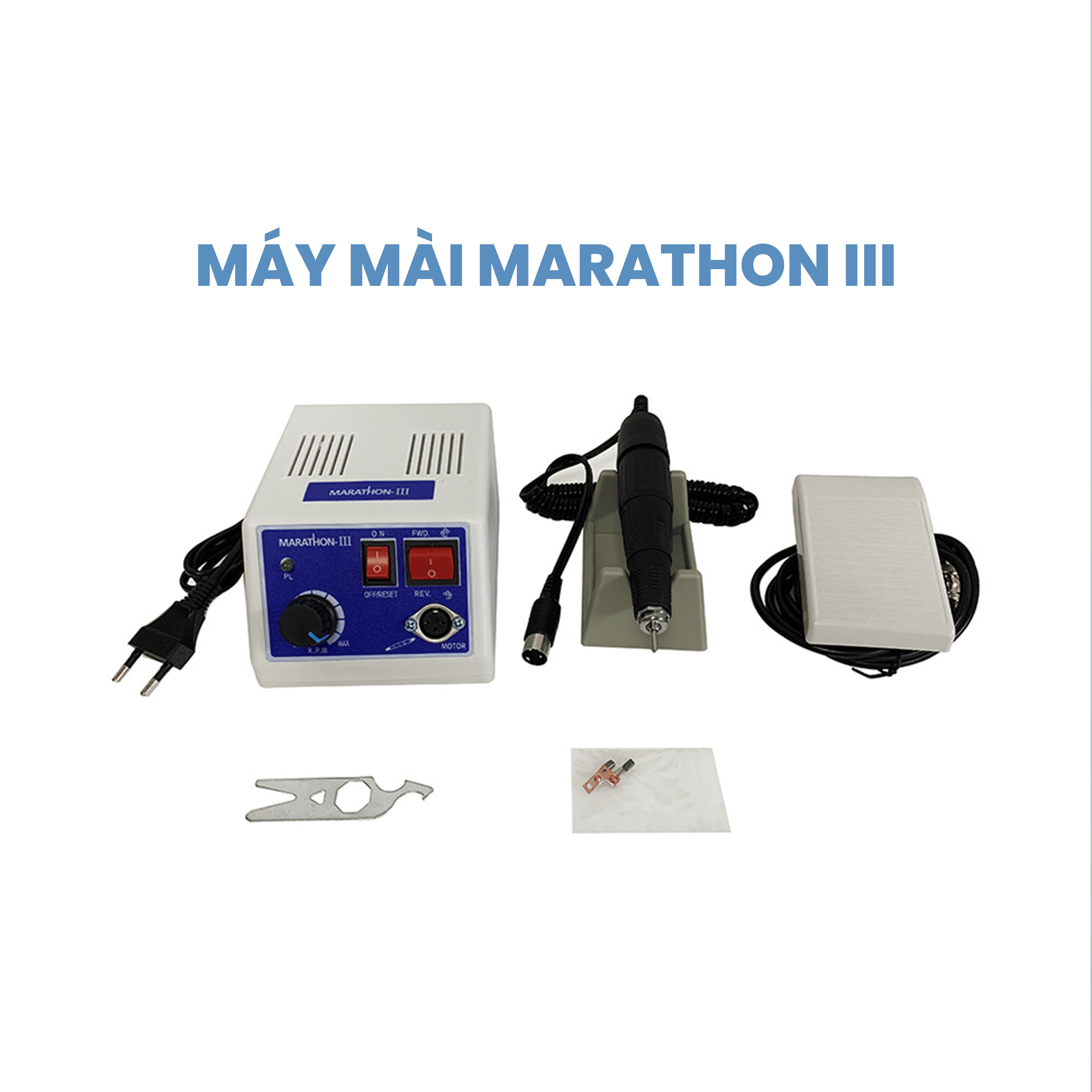 𝑻𝒉𝒐̂𝒏𝒈 𝒔𝒐̂́ 𝒔𝒂̉𝒏 𝒑𝒉𝒂̂̉𝒎: Nguồn điện: 220V/50Hz Tần số: 26kHz ~ 33kHz Momen xoắn: 3.5 N/cm Tốc độ tối đa: 35.000 vòng/phút Bộ gồm: máy, pedan, giá đỡ, chuôi chuyển, đầu tay khoan. Chuôi chuyển đổi sẽ lắp được tuỳ ý các đầu tay chậm. Bảo hành 6 tháng các lỗi do nhà sản xuất. Quý khách chỉ cần cắm điện là có thể sử dụng được, không cần máy nén. Giải quyết được vấn đề thiếu không gian lắp đặt và tiếng ồn khi chạy máy nén, tuy nhiên tốc độ vòng xoay sẽ có phần chậm hơn. Máy dùng liên tục sẽ bị nóng, khuyến nghị khách hàng nên sử dụng cùng pedan và cho máy nghỉ một chút rồi mới dùng tiếp. ============================= 🔺MICROMOTOR - TAY KHOAN ø1.6mm: Máy, pedan, chuôi chuyển, 1 đầu tay khoan lắp mũi tay khoan siêu tốc 🔹FULL BỘ MICROMOTOR - 3 TAY KHOAN: Máy, pedan, chuôi chuyển, 1 tay khoan lắp mũi tay nhanh, 2 tay khoan chậm đầu khuỷu và thẳng #maymai #maymaicham #micromotor #strong90 #marathonIII #maymailabo #nhakhoa #labo #taykhoan